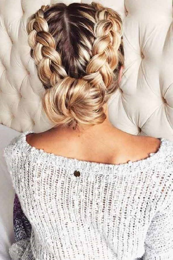 This is a messy chignon that’s jazzed up with a thick braid. Do a traditional chignon bun, leaving a section out to make a thick Dutch braid. Wrap it around the side of your head, feeding it into the bun or wrapping around the base. Pull at the braid and loosen your bun until you get to the level of messiness that you want.
