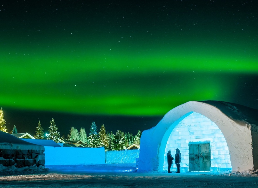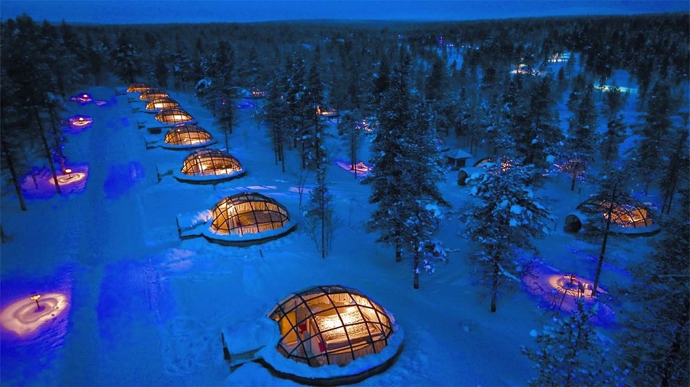 If you really want to be closer to Santa Claus and feel what it’s like to live deep inside the wintery forest (I’m just guessing that’s where he lives?) then head to Saariselka in Finland famous for its one of a kind Kakslauttanen Arctic Resort. There you can stay in an actual snow igloo, rent a cosy log cabin, or spend a few nights in the unique glass igloos with a breathtaking view of the Northern Lights.