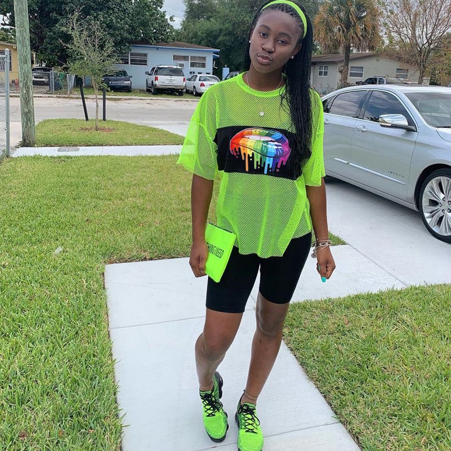 Channel serious fashionista vibes with these trend-setting looks. It consists of all-black-everything and a pair of chunky, colorful sneakers. Think of it as a more low-key version of a “raver girl” look with pops of neon. Fishnet over-shirts look fabulous in either neon colors or all black and automatically pull a look together.