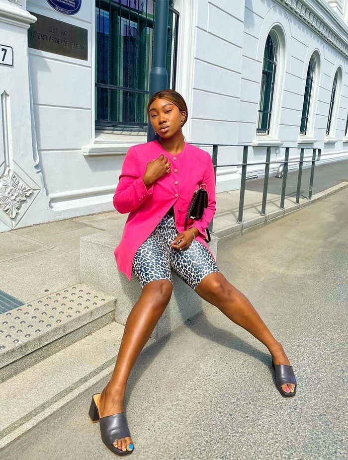 As confusing as the bike short trend may seem confusing to some, it’s an edgy power move that everyone needs in their wardrobe. Underneath the blazer, wear a cropped tank or pop-of-color bralette. It’s also a good opportunity for a monochromatic moment. The perfect shoe for this look is a heeled sandal, and a mini bag or clutch will look more elegant than a tote.