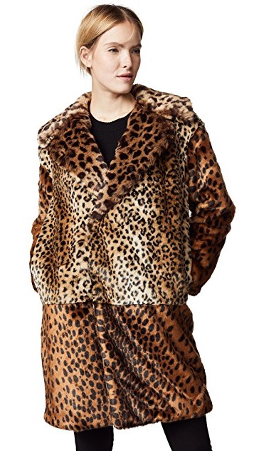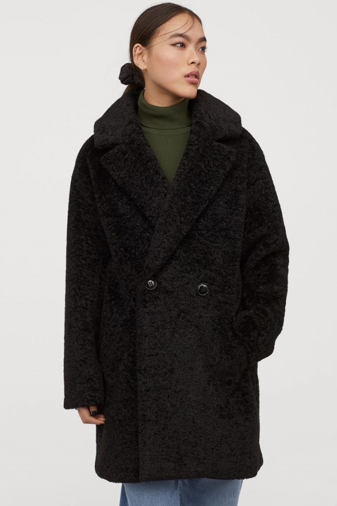 Black never gets tired, and this faux fur double-breasted rendition is sheer proof of that. It’s lined to ensure high quality and keep you warmer. This machine washable look is perfect with a high turtleneck.