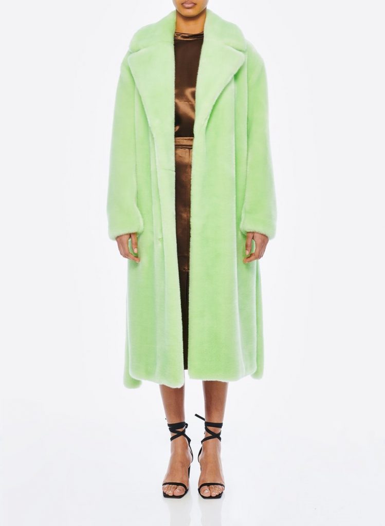 Sometimes a girl just wants to look pretty in pink, and this coat definitely accomplishes that. It hits around mid-thigh and adds a sense of pastel wonder to the dreary winter weather. It blends the faux fur and teddy bear fur trends for a hybrid look that we’re obsessed with.
