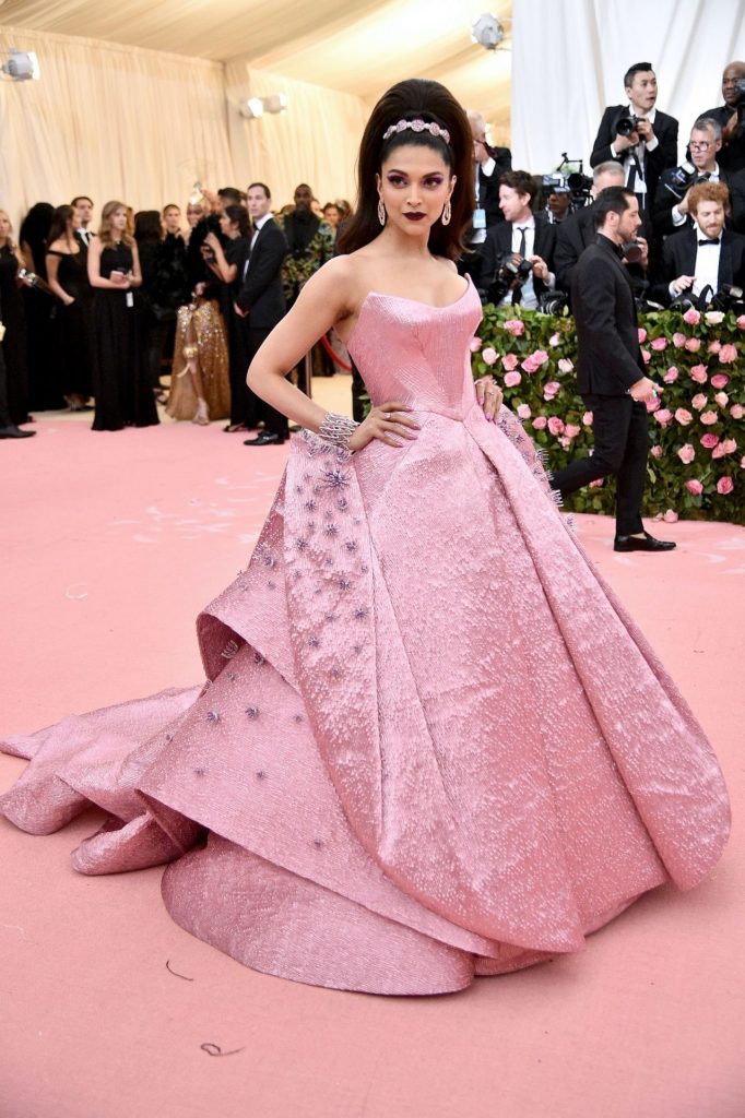Fiber optics are just the beginning for Posen. Who tackled fashion tech at the Met Gala 2019. Deepika’s flamboyant dress was coated in 408 3D crystals, which took over 160 hours to make. The shade of pink and amount of sheen was absolutely breathtaking, and perfect on Deepika. Who else would think up a metallic pink lurex jacquard gown?