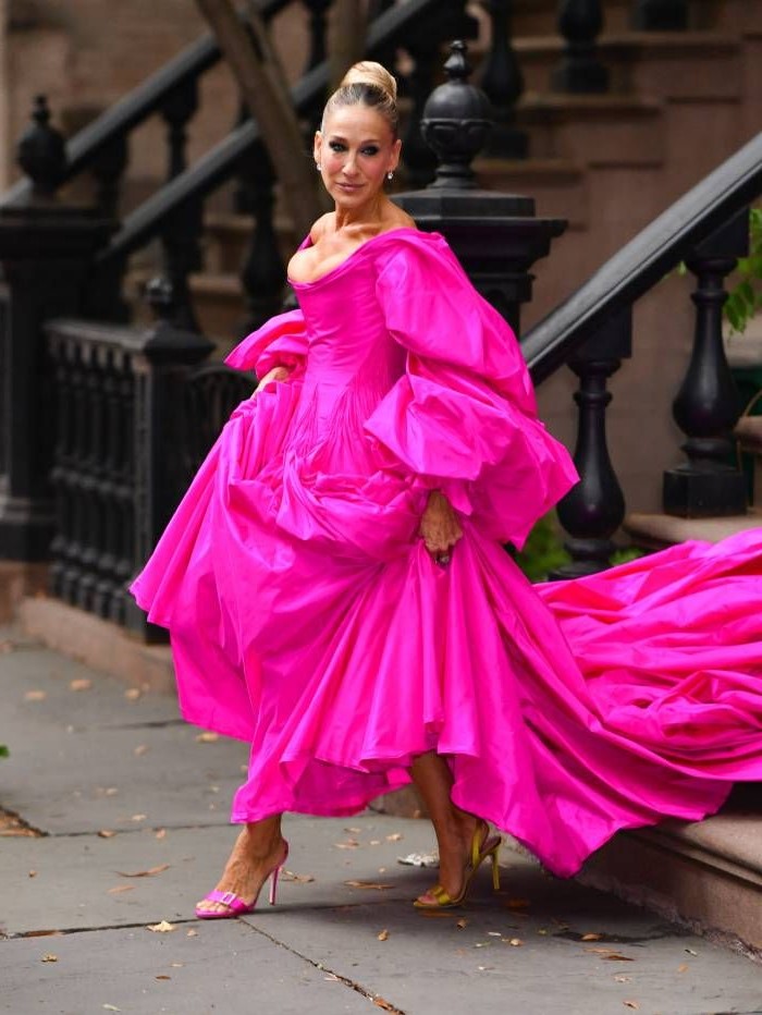 Sarah Jessica Parker, aka Carrie Bradshaw, has been a queen of fashion moments since the 1990s. She can somehow wear the most ridiculous, couture looks while strutting down Park Avenue and still look like she fits right in. The same goes for this voluminous hot pink look worn to the 8th Annual New York City Ballet Fall Fashion Gala. Looking like somebody’s high fashion fairy godmother from the 80s, SJP was radiant in this look.