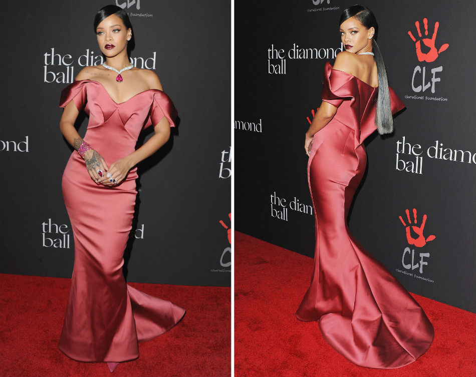 Zac pulled out all the stops for glam queen Rihanna, whose dress fit her like a second skin at the Diamond Ball in 2014. Paired with a matching pink mega diamond on her finger and neck, this is maybe our favorite Rihanna gown moment ever. No one kills that dramatic in-cut and out-flare like Posen.