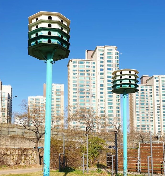 You can often see birdhouses like this in the streets. They are multi-storied and can accommodate a few bird families at once.