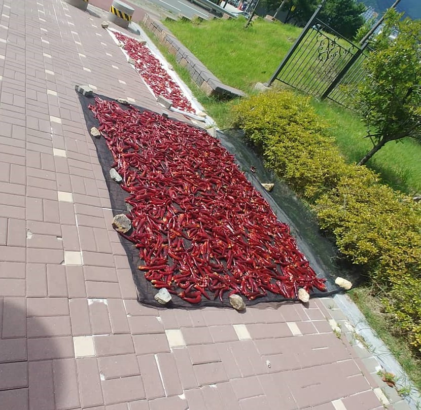 Just like in many other Asian countries, chilli peppers are dried outside. What you don’t see often is pepper drying right in the city streets!