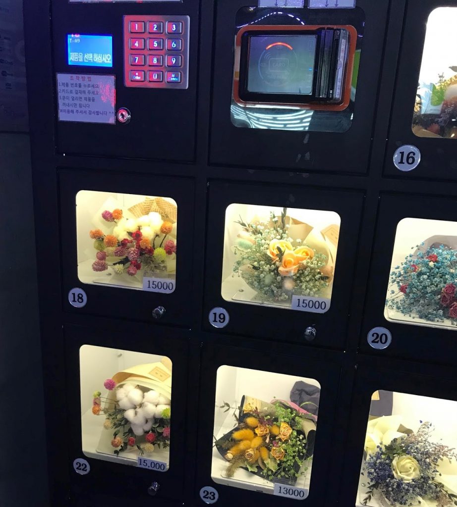 Buying flowers for a date is never a problem because you can find special flower machines everywhere you go.