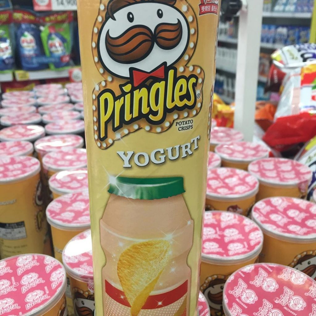 There are all kinds of potato chips sold in South Korean shops. How about Pringles with a taste of yoghurt?