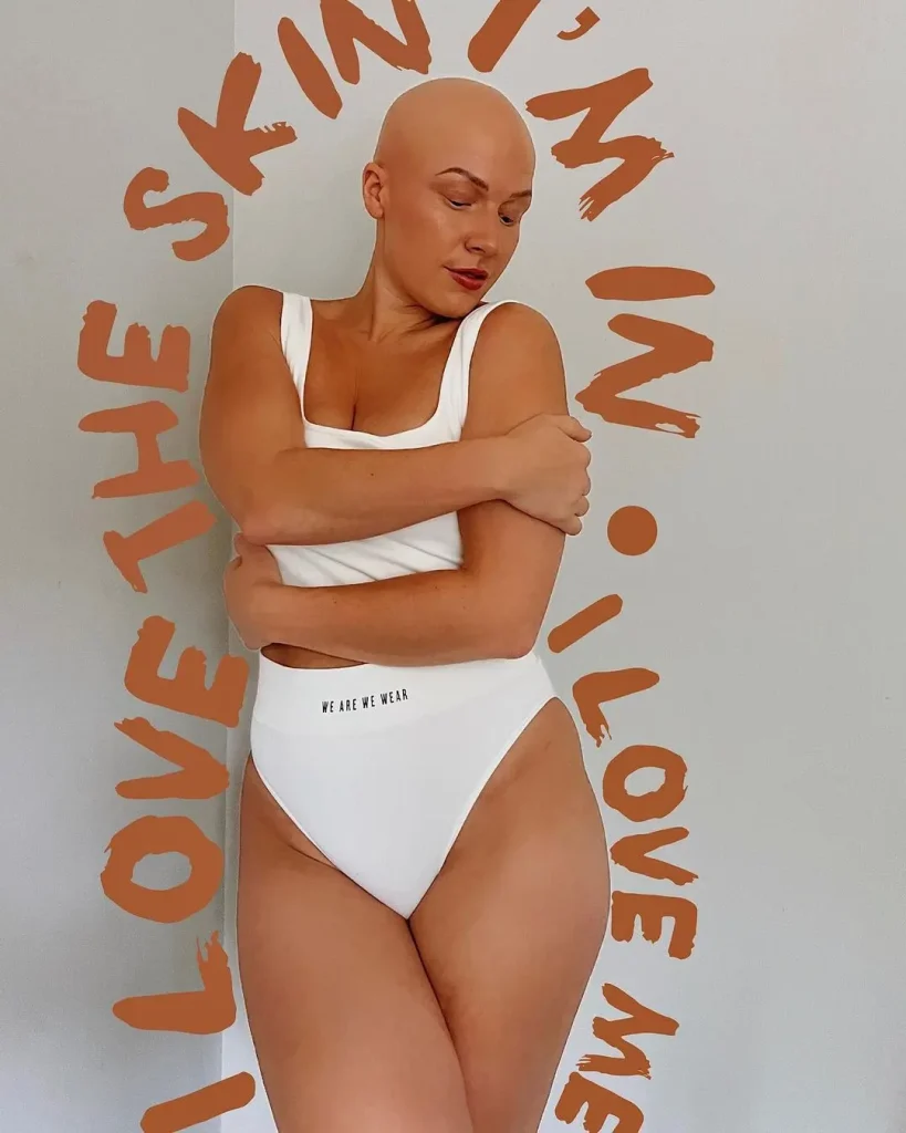 12. Jess (@jessicarose.newman) – Jess’s inspiring journey with alopecia showcases her strength and resilience. She promotes the normalization of different body aspects, encouraging followers to embrace and love themselves wholly.