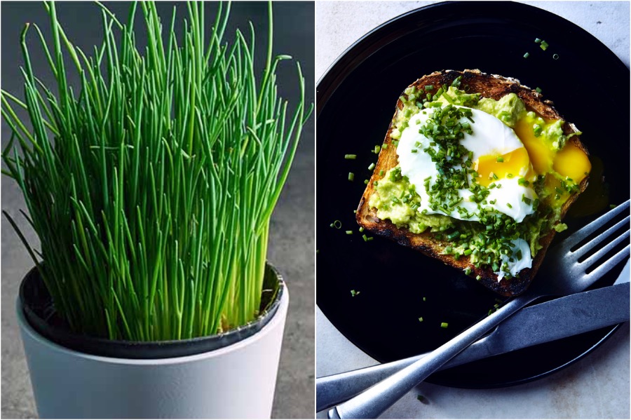 Chives are super easy to grow in a pot, they will brighten up your kitchen and you can just use kitchen scissors to cut as much as you want for the garnish. They’re great with mashed potatoes, they will brighten up any sandwich, add them to your bagel with cream cheese. In fact, chives are amazing for mixing into dips to add a bit of flavor.