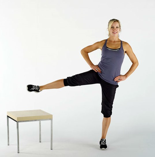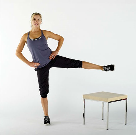 Leg lifts are great for the lower body of course, but when done correctly lateral leg lifts can also help strengthen back muscles as well. The key to this exercise is to make sure your head is up and shoulders are open. A proper lateral leg lift is achieved standing up straight with good posture, shifting the body weight to one side, and keeping the back straight while lifting the opposite leg.