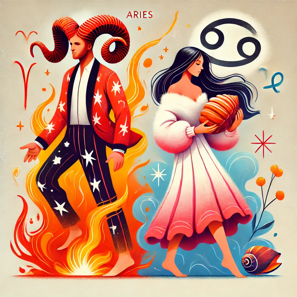 Aries, meet Cancer—the walking, talking embodiment of “opposites attract.” The Ram charges forward, while the Crab…well, it prefers its cozy shell and a Netflix marathon. Aries is impulsive and loves action, while Cancer’s comfortable place is a calm, safe haven. The chemistry? Off the charts. But when they move in together? It’s like trying to mix hot sauce and whipped cream.