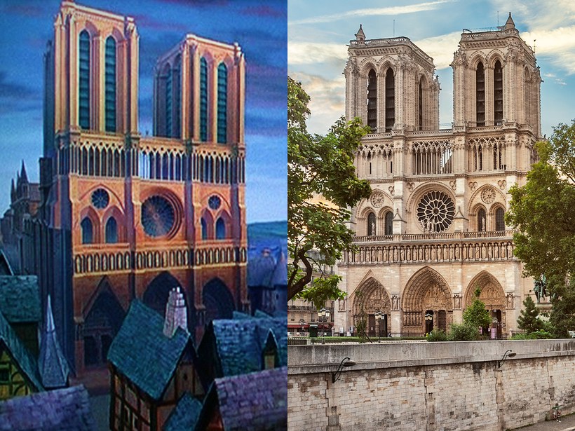This doesn’t really come as a surprise, given the movie’s name and main setting, that the cathedral in the Hunchback of Notre Dame is the very same Cathédrale Notre Dame located in Paris – at least, what it looked like before the horrendous fire that crippled its architecture. The artists behind Hunchback masterfully transferred the actual building into an animated form with all its stained glasses, gargoyles, and buttresses.