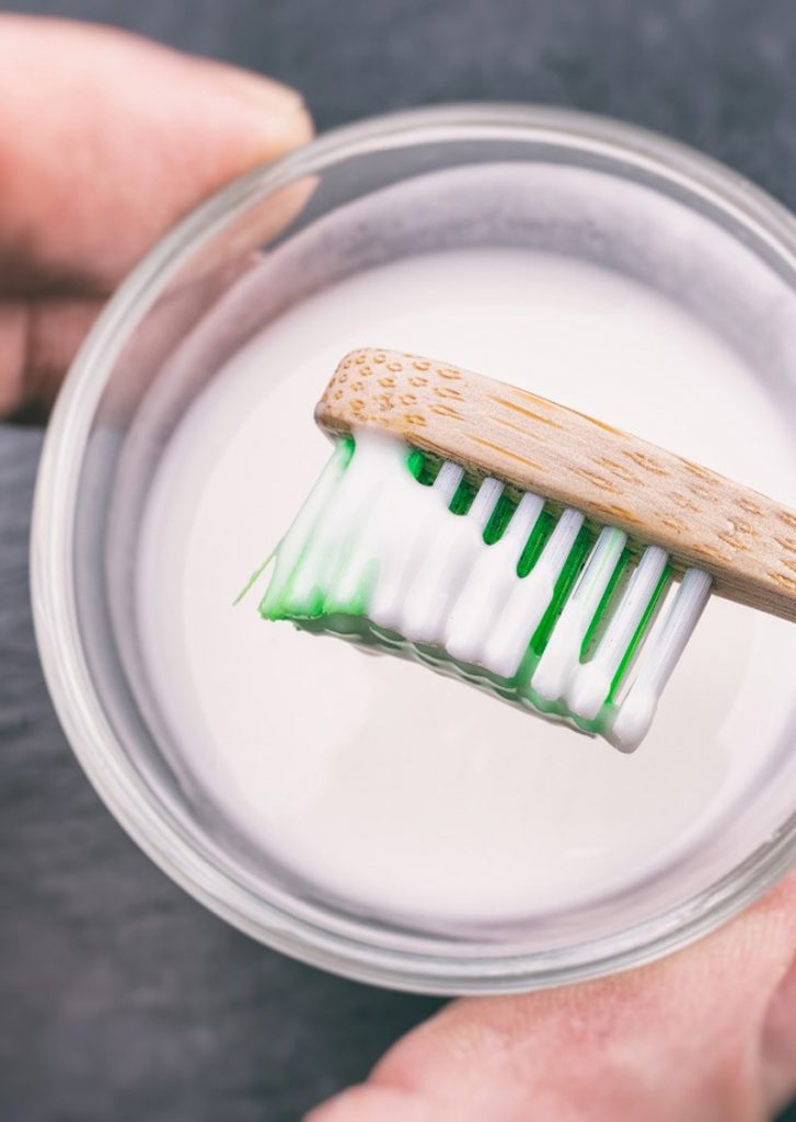 A simple paste made of soda can considerably whiten your teeth if you apply it regularly. Make a thick paste using baking soda and a few drops of water, creating a consistency similar to that of toothpaste. Apply it to your teeth with a toothbrush using gentle circular motions. It’s easy to damage your enamel with baking soda, so you should be really careful. Do this for 5-7 days every day, then continue with just a few times a week.