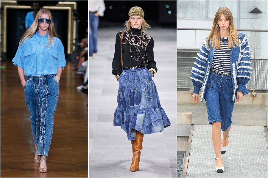 Vintage denim is sturdy, it can last ages and then be remade into something new and designers like Alexander Wang, Bottega Veneta, Chanel, Celine and many others have clearly taken that into consideration. There were a lot of vintage-inspired denim pieces on the runways that are either made from scraps of denim and look totally unique. There were also quite a few denim ensembles that just look super vintage and something you could possibly thrift, we love a fashion trend that we can thrift.