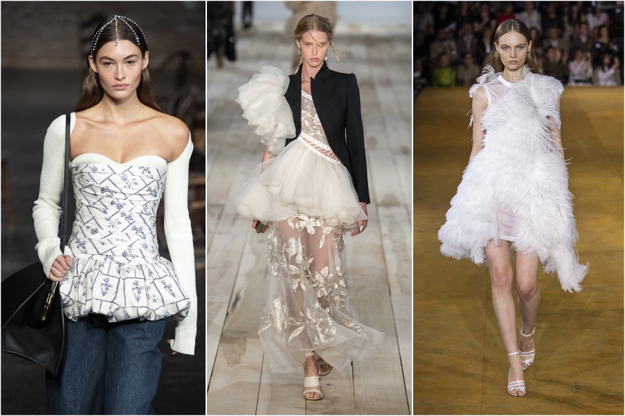 Romantic silhouettes and historical fashion made modern are very trendy this spring thanks to designers like Louis Vuitton, Zimmerman and Alexander McQueen. Bows, lace, feathers, ruffles, puffy sleeves – all of these are going to be super trendy this spring. And here’s a little bonus for those who like playing with their silhouettes – puffy sleeves make your shoulders look wider but in comparison, your waistline starts looking smaller. Isn’t that cool?