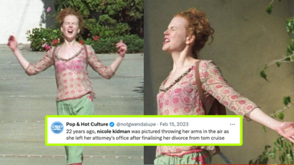 While the divorce was supposedly amicable, Nicole Kidman was photographed in a now-iconic image that was reportedly snapped after she left her lawyer’s office following the divorce. Her arms are flung open, and she looks to be in total euphoria. This photo turned into a viral meme years later on social media, but the story behind the marriage ending is still somewhat of a mystery. Kidman addressed the photo when speaking with British GQ, saying, “That was not me; that was from a film, that wasn’t real life. I know that image!”