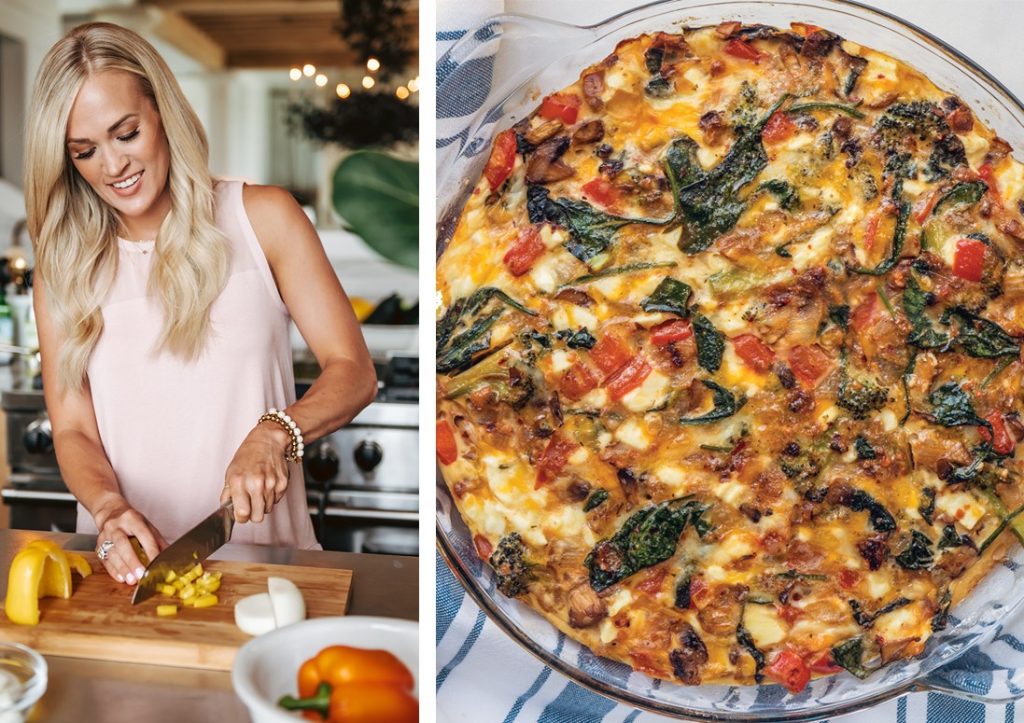 Underwood has also been sharing recipes that she’s been trying at home, like her delicious tortilla pizzas topped with vibrant veggies. We’ll eat any version of pizza any day, so count us in.