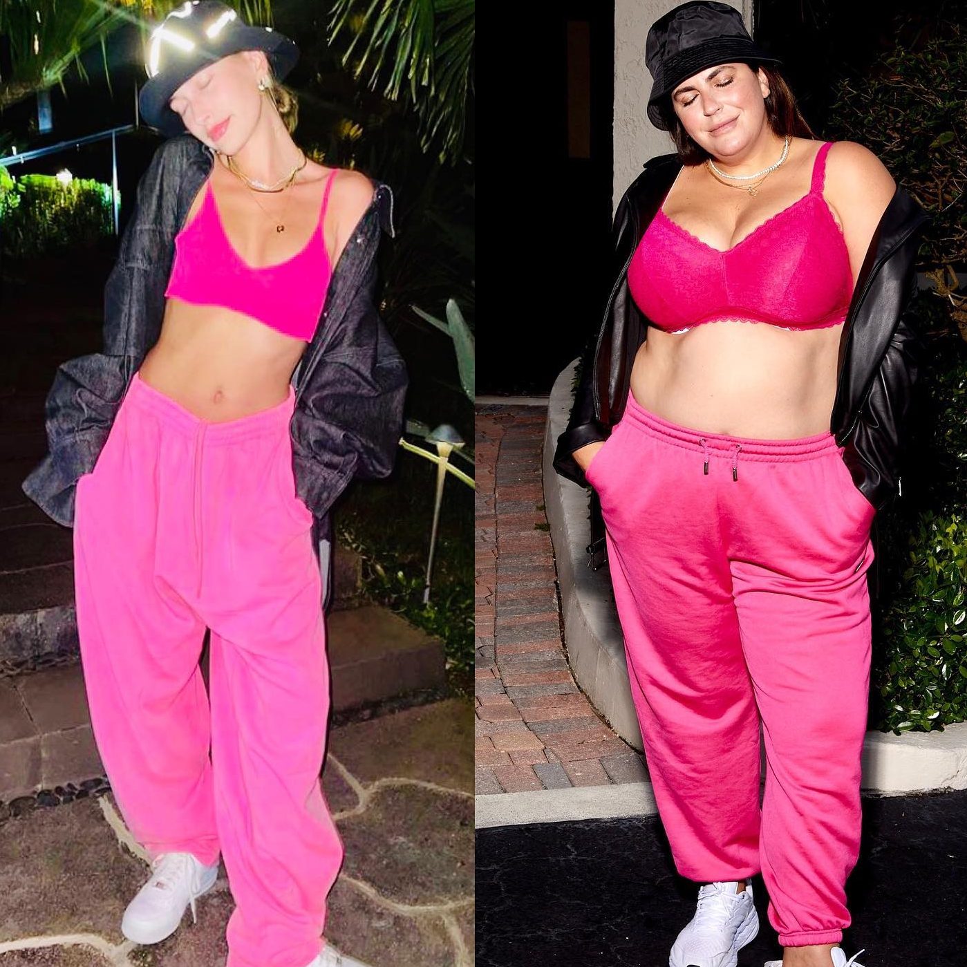 1. Katie Sutrino recreated a casual Hailey Beiber look in bright pink and said that initially she hated this look and it didn’t look like something she would ever wear, which was kind of the point, to expand her horizons. But after styling it for herself and snapping the photo she decided that she quite liked it and would wear it again.