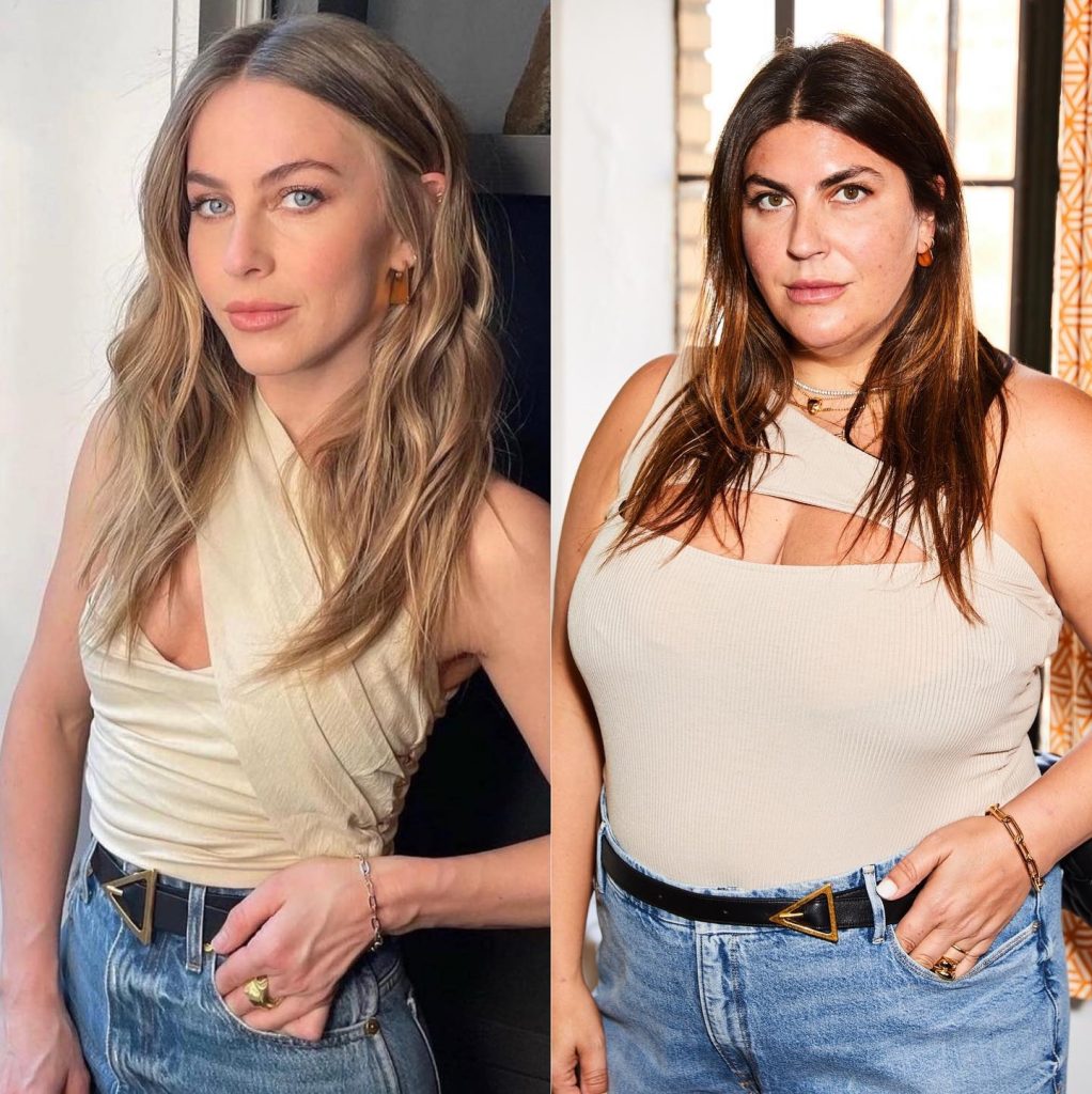 9.And finally he’s Katie Sutrino recreating a casual Jules Hough look. Katie jokingly calls these «complicated tops» and stresses that back in the day these used to be a no-no for big girls, but as you can see both Julianne and Katie both look cute as hell.