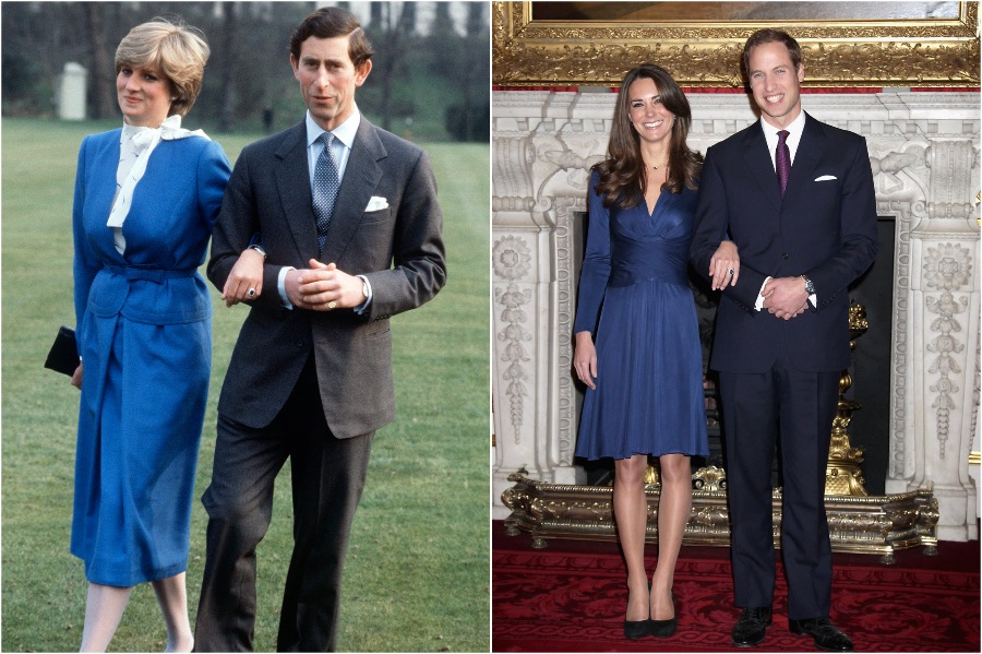 11. This is one of those things where it’s just too on the nose to be a coincidence. On the left, we see Diana and Charles on the day they announced their engagement in 1981. Diana is wearing a blue dress. And on the right, it’s Kate and William’s engagement announcement, and Kate is also wearing blue. We’re pretty sure she did it on purpose.