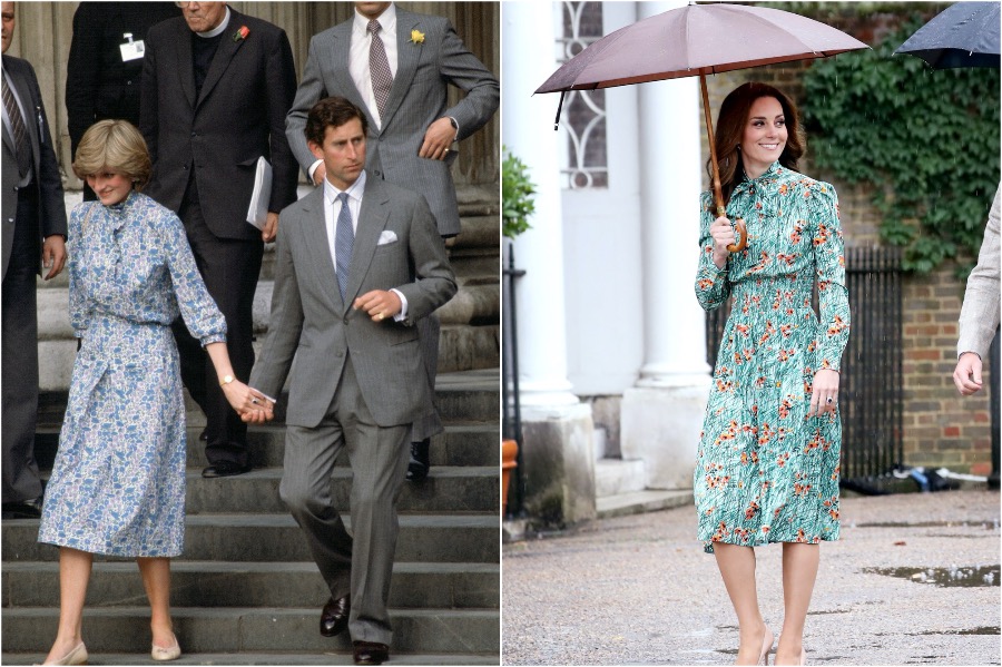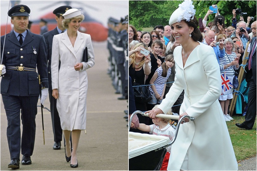 2. Diana wore this when she visited the Isle of Wight in 1985 and it looks like Kate chose a very similar look for her daughter’s Christening in 2015. Different designers made these, but you can’t deny that the vibe is the same.
