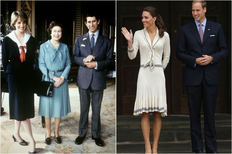 3. Who knew wearing sailor dresses would be this popular amongst new royals, but here we are. This photo of Diana was taken in Buckingham Palace in 1980 and Kate wore this Alexander McQueen sailor dress when visiting Canada in 2011.