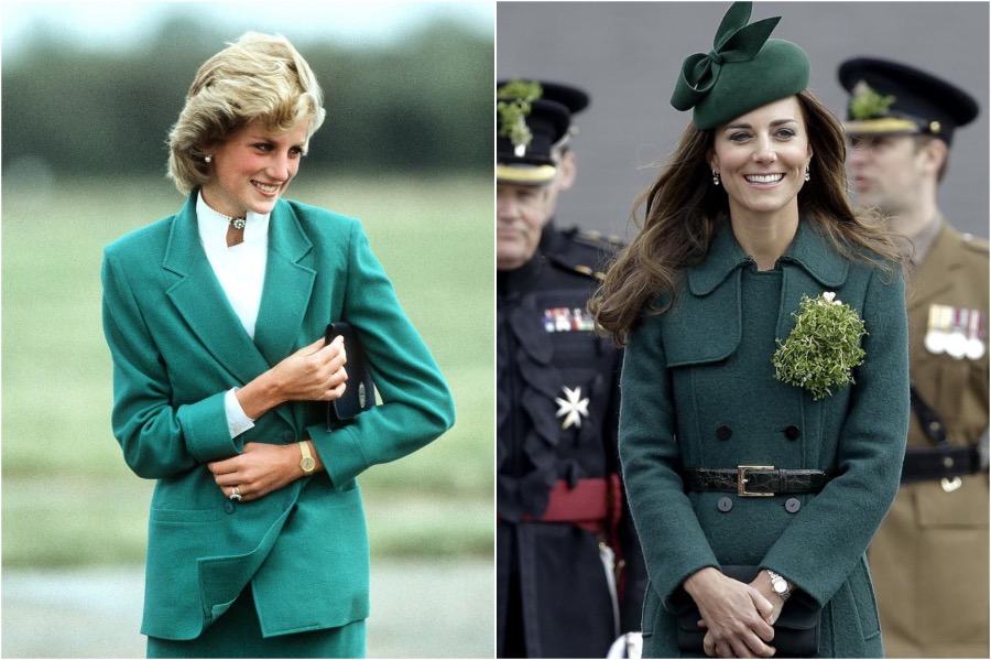 9. Green definitely suits them both, and Diana looks stunning in this slightly masculine green suit. Kate, as always, goes for a more tailored and figure-hugging silhouette.