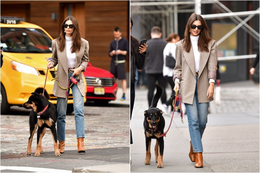 1. While most of us go out to walk our dog in sweatpants, Emily wears a blazer and heeled boots. That’s dedication, don’t you think? Not that she wouldn’t look just as incredible in sweatpants.