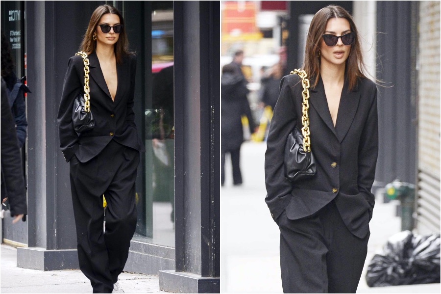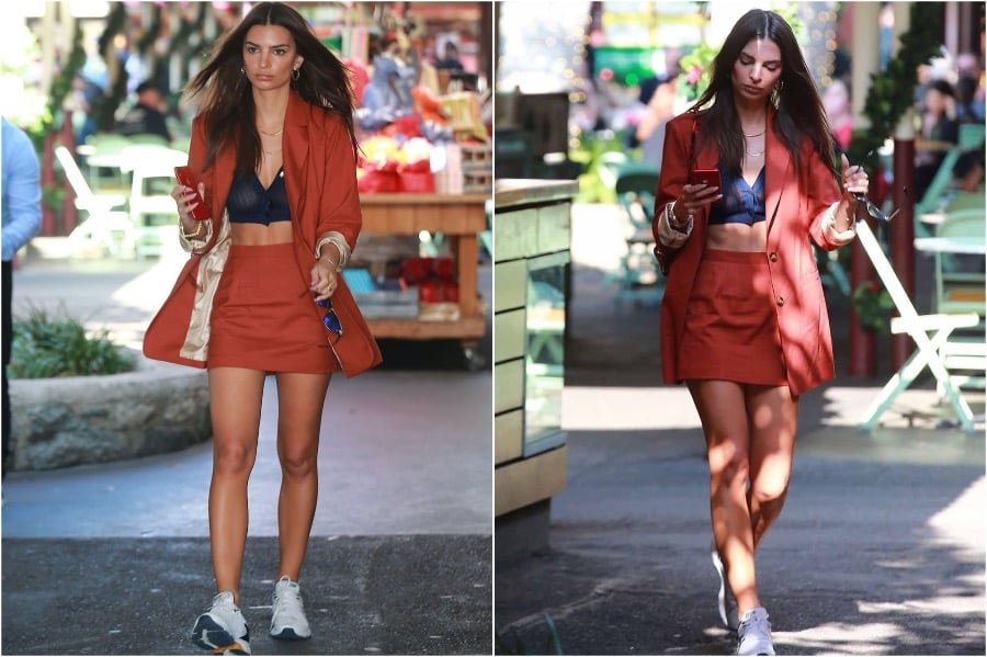 4. Emily definitely has a soft spot in her heart for baggy relaxed suits and she tends to pair them with crop tops. It’s a perfect juxtaposition of relaxed style yet fitted crops to showcase her abs.