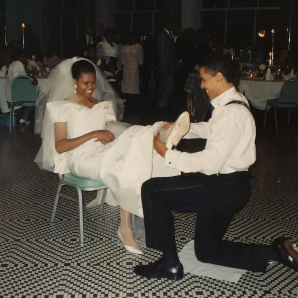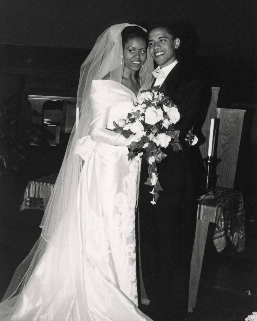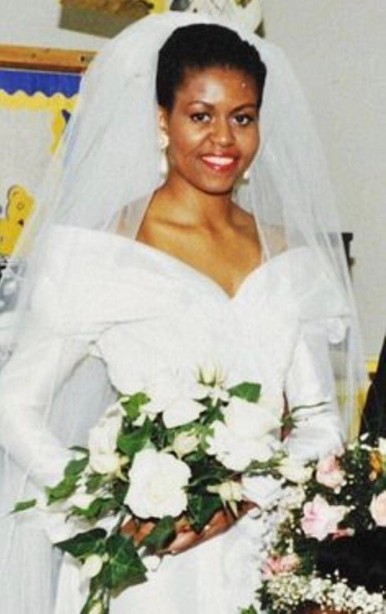 At Michelle Obama’s wedding, she wore an off-shoulder dress that screamed “bride” and made us all swoon. It was certainly traditional and regal, featuring long sleeves, a fitted waist, and a Bardot neckline in all-white, donning a timeless look that you’d be lucky to find in a vintage shop today.