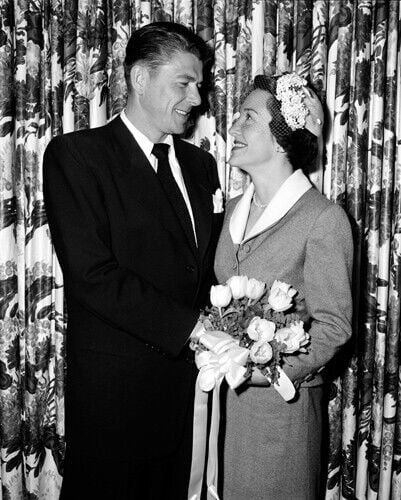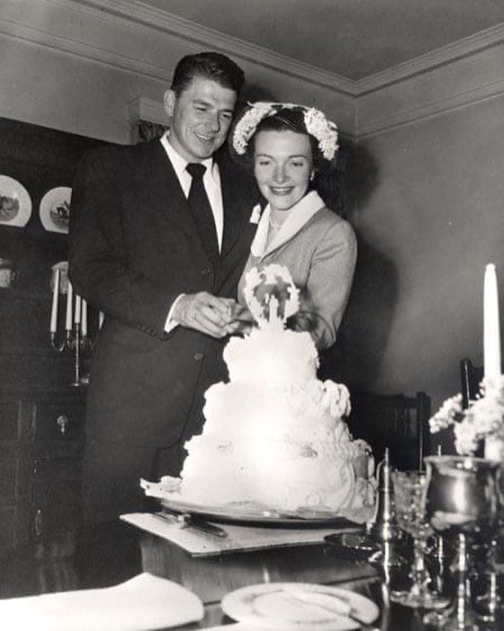 Just like Laura Bush, Nancy decided to wear a chic, non-white matching set rather than a white wedding dress. She wore a two-tone skirt choice, and many suspected it was because she was Ronald Reagan’s second wife, making a demure look more appropriate than a white dress, which is often chosen by young brides embarking on their first marriage. However, she may have also simply been making a statement with a different look. This look is also in her husband’s presidential library, and you can often find a skirt suit like this at a library.