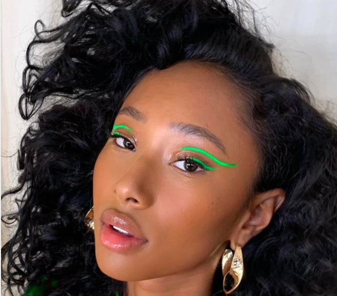 2. Slime green eyeshadow isn’t often a popular look – can anyone besides Cardi B pull that style off? The answer is yes, wit the right graphic eyeliner cut crease.. Play with the length of your tail on this neon look, which is perfect for a range of skin tones.