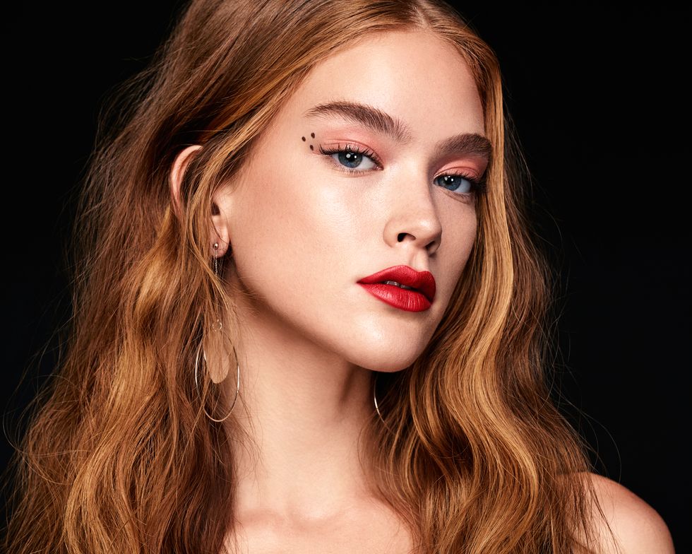 7. This passion red look is pretty much doable year-round. Red liquid liner lines the top of the lash line, following the shape of the eye. Be afraid to make the line thick, but when you wing it out, keep the upper line a bit thinner.