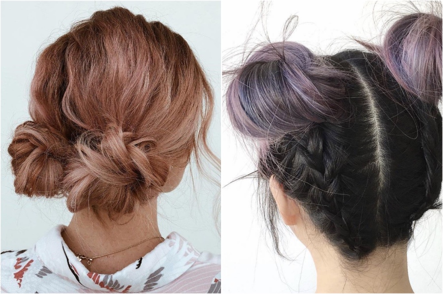 A messy bun is good but two buns are even better. Long hair is perfect for creating space buns, low buns or even braided buns for a more put together and intentional look. They’re easy to do and perfect for days when you don’t have the time to mess around with blow dryers and big brushes. Just wrap your hair into buns and you’ll look cute and ready to face the day.