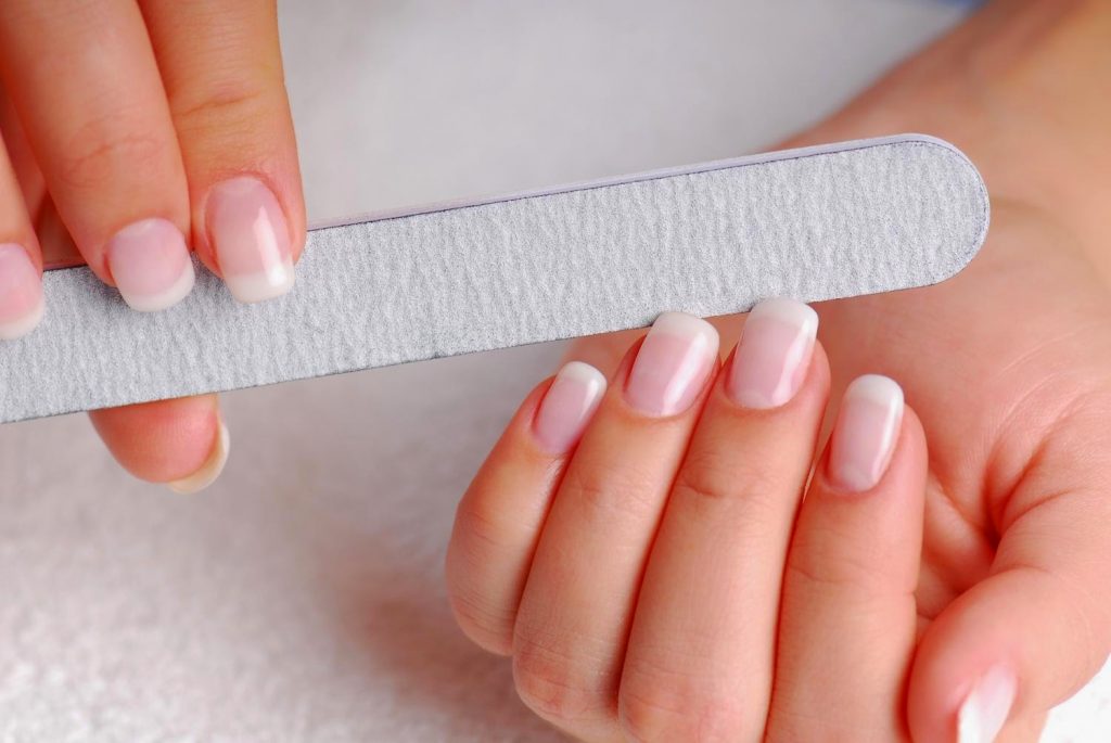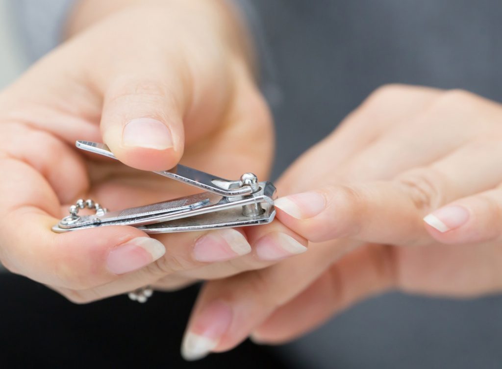Most of the time dip powder nails turn out a bit longer than your natural nails, which means you have some excessive nail extensions to get rid of. Simply clip them off to remove extra length and the rest of the procedure will go even faster. If your dip powder nails are short – just skip this step.