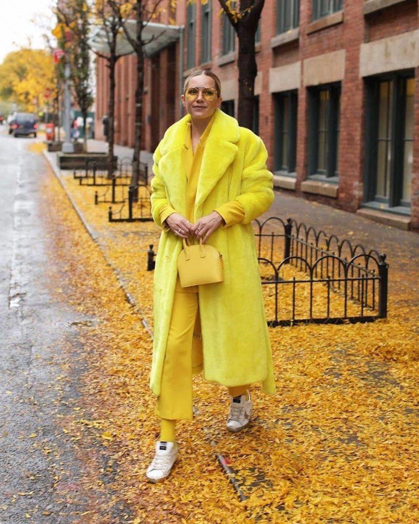 4. The all yellow ensemble is bound to get you some envious double-takes on the street, but you’ll definitely brighten up everyone’s day and will be the center of attention in any room you enter. As you can see, it doesn’t have to be the same exact shade of yellow, but it’s important to work in layers when picking different shades of the same color.
