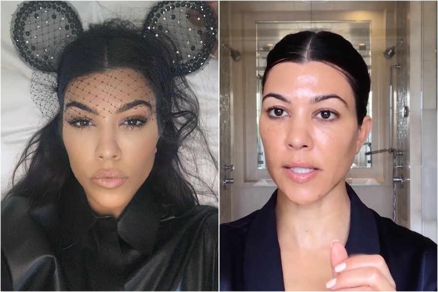 Kourtney is all about natural beauty and natural beauty products. She likes making her own face masks and lip scrubs, she also makes sure that her makeup products are clean in terms of ingredients. And she doesn’t really like doing her makeup herself, so when she does, it’s always very minimal. And it all pays off. She’s in her 40s and her skin looks incredible. She basically looks the same without makeup.