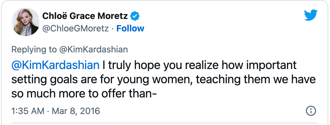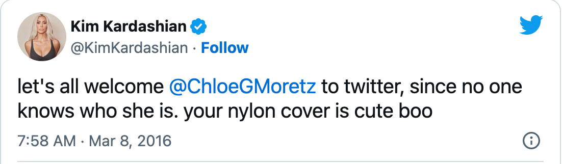 She told Chloe, “Let’s all welcome [Chloe Grace Moretz] to Twitter, since no one knows who she is. Your nylon cover is cute boo.” Meanwhile, she responded to Bette, Hey [Bette Midler], I know it’s past your bedtime but if you’re still up and reading this send nudes.”
