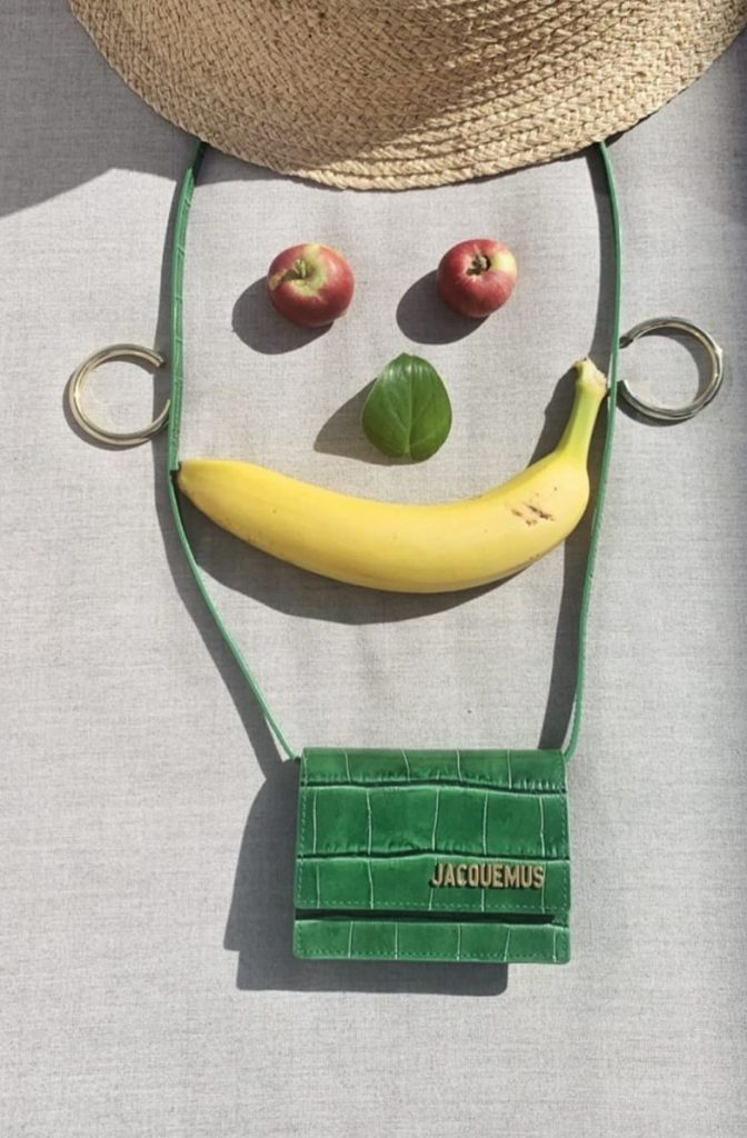 5. Meet the fruit salad who has an affinity for Jacquemus accessories. A mini clutch and an orange make up the eyes, while a curved banana adds a playful smile to the mix.
