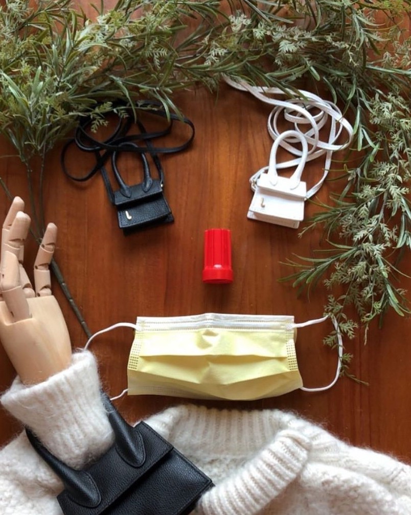 9. Since everyone is freaking out about wearing a mask,, this creator decided to put one over his creation’s mouth. The head is made form an elegant wreath, while the eyes are two very chic mini Jacquemus bags. Even a mannequin hand was added for this challenge!