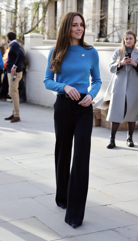 Kate Middleton showed support for Ukraine as she wore a blue sweater and a blue and yellow bade on a trip to London’s Ukrainian Cultural Centre. The Duchess of Cambridge arrived to learn more about the efforts to fight back against the war and support those affected. The sweater was an Alexander McQueen look, which was meant to match the Ukrainian flag.