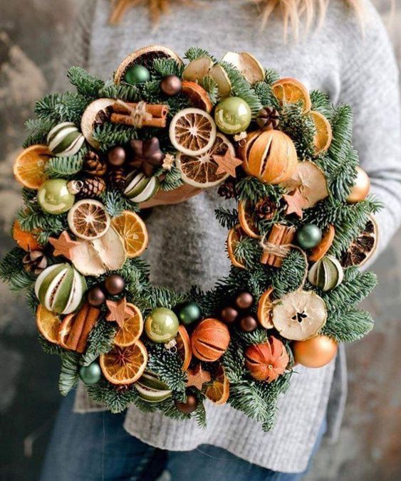 Dried fruit can be used to make a pretty garland hung in doorways or anywhere else that you’d like. This versatile decorative string can be done with dried grapes, cranberries, or orange slices…don’t be afraid to get colorful with things. Do it in a dehydrator or oven and string it with a thread and needle.