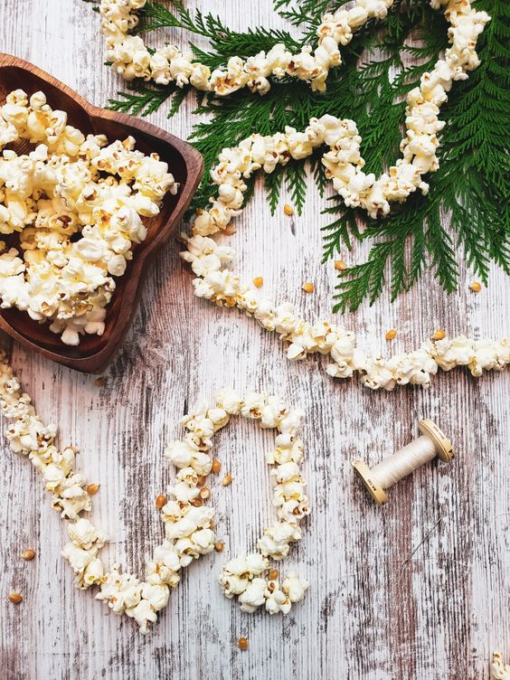Just like dried fruit, popcorn can be strung with a needle and thread for a fast, lazy decoration. It looks great wrapped around a Christmas tree. Don’t be afraid to use cheddar popcorn, kettle corn or other flavor varieties to get some color in your garlands. Another bonus about this hanging decor is that it’s edible!