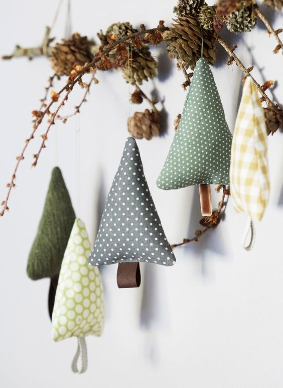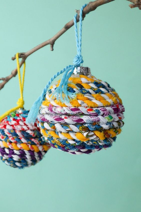 Fabric scraps can be tied onto bows and used on a tree. Don’t have any scraps? Check out your wardrobe for old clothes you don;’t wear anymore or damaged garments. Cut the fabrics into strips and look up sewing patterns for Christmas ornaments. You can also knot together silk scarves and hang them on a mantle.