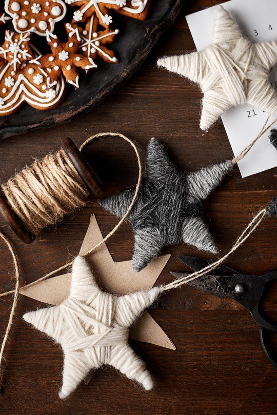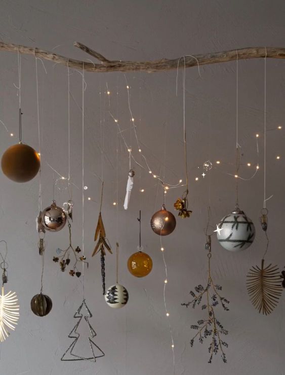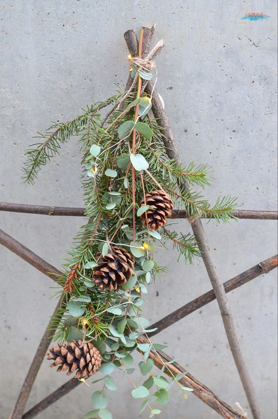 Stars are a classic piece of Christmas decor, and you can make your own by arranging wooden sticks of different lengths into a star shape, connecting ends by wrapping them with florist’s wire. Fake berries, beads and other ornaments can be added on a side, and it can also be dressed up with a sprig of mistletoe or eucalyptus. Hang these stars near a staircase or window.