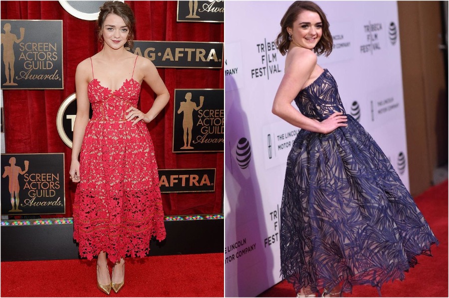 4. First red carpets and premieres for Maisie must’ve been hard. She was around 14 and at that time most teens only have to think about what to wear to a school dance, not a red carpet where photographers will take photos of you and the whole world will see them. There was a lot of trial and error with more controversial short dresses and some age-appropriate outfits.