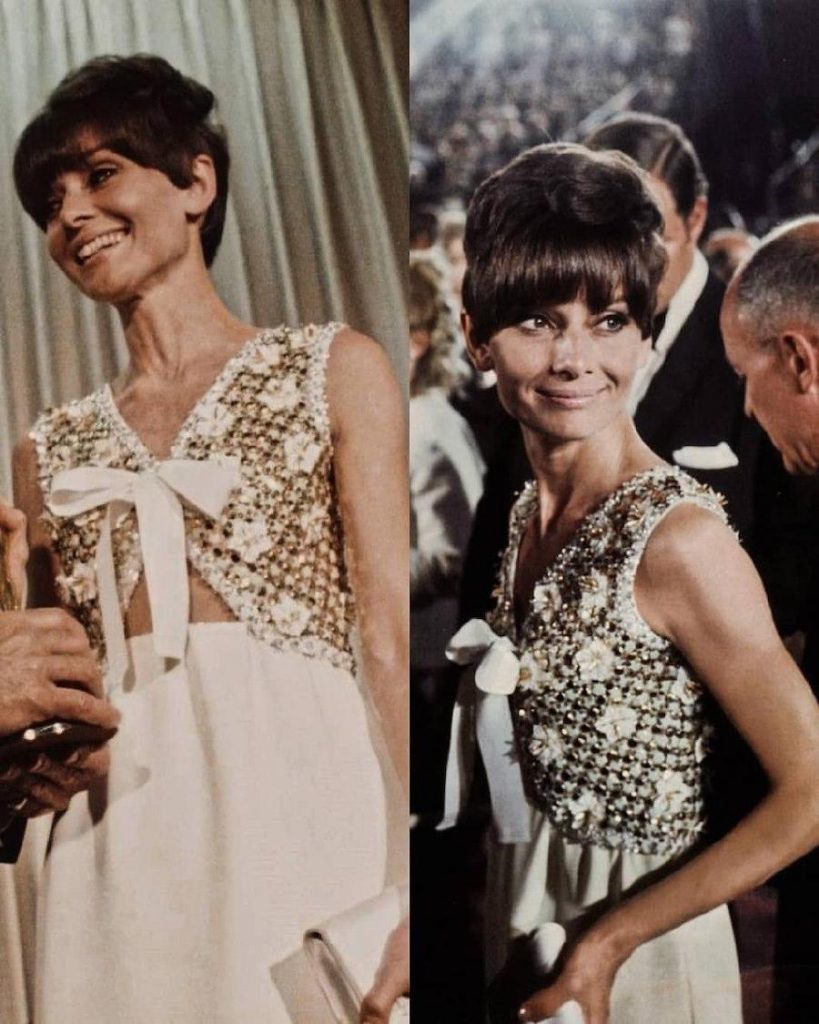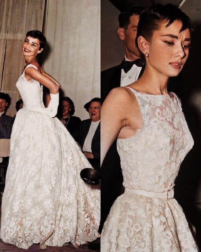 1. This is a dress Audrey once wore to the Oscars in 1954 and that was the year she won her first Oscar. It was for her role in the movie Roman Holiday. No wonder it’s a classic. But look at that gorgeous white dress with lacy details, so feminine, so elegant.