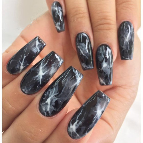 While white marble is the more popular choice, black marble has a brooding, romantic energy that we’re really digging. Perfect for girls who used to Sharpie their nails to be rebels. The transition from countertop to cuticle is actually really cute and sophisticated, lending well to multiple situations such as work, play, or date night. Try it with a single nail, and if you like the result, move onto a full set.